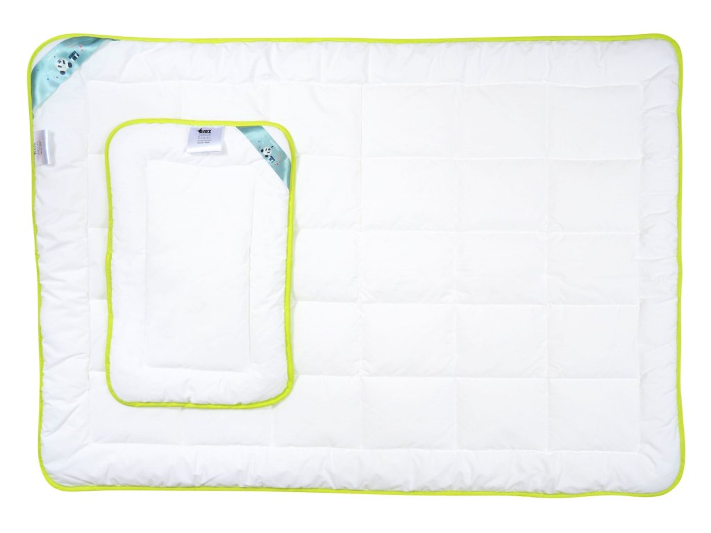 Комплект от бамбуково одеяло с възглавница за детско легло. Използваният бамбук е особено подходящ за новородени, тъй като има отлични бактериофобни свойства. Бамбуковата пълнеж е антиалергична и регулира влажността перфектно, като по този начин предотвратява образуването на мухъл.