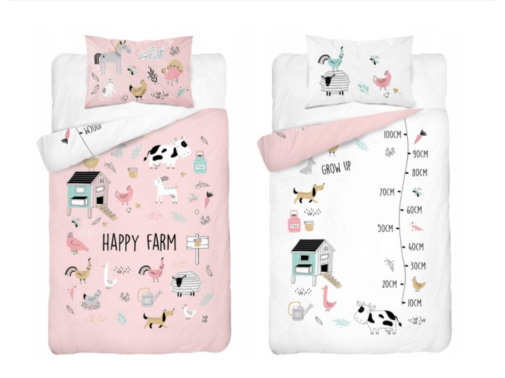 Спално бельо с мотиви на селскостопански животни – двулицево.