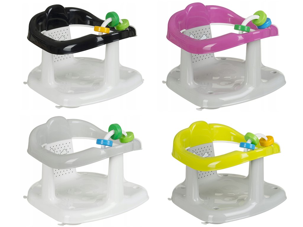 Ергономично оформена седалка за баня за деца. Препоръчваме да използвате седалката, когато детето ви може да седи самостоятелно (приблизително на възраст 7-16 месеца). Три дрънкащи пръстена, разположени пред бебето, осигуряват забавление по време на къпане.