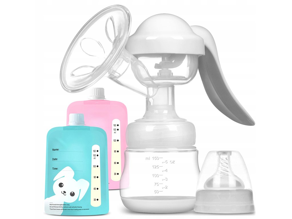 Комплектът включва: силиконова чашка за гърди, механизъм за изцеждане, силиконова мембрана, биберон с капачка, бутилка 150 мл, 2 контейнера за кърма за еднократна употреба.