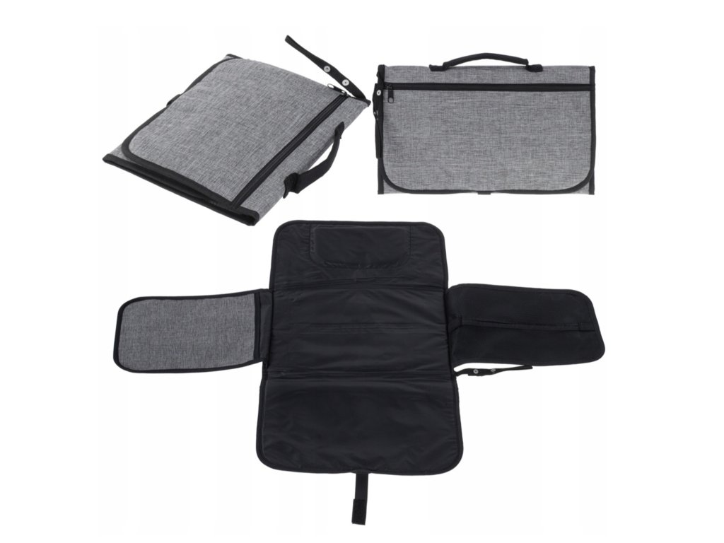Пътуваща подложка за преобличане, органайзер и пътна чанта в едно. Чантата може да се използва за съхранение на малки аксесоари, необходими за преобличане. Чантата е изработена от водоустойчив плат, който се почиства лесно.