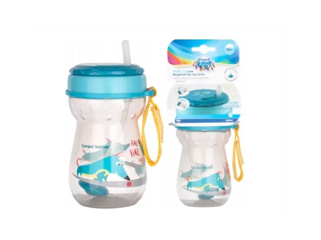 Практична бутилка със сламка за самостоятелно пиене. Благодарение на тази бутилка децата ви ще се научат да пият самостоятелно, без да намокрите пода. Бутилката има достатъчен капацитет дори за по-големи деца и практичен шнур за закачане (например на количка).