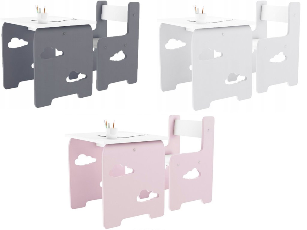 Детската стая с мотив облаци е подходяща както за момчета, така и за момичета. Комплект от детска маса и стол в красиви и стилни пастелни цветове и скандинавски дизайн. Мебелите са подходящи за всяка модерна стая за момичета или момчета.
