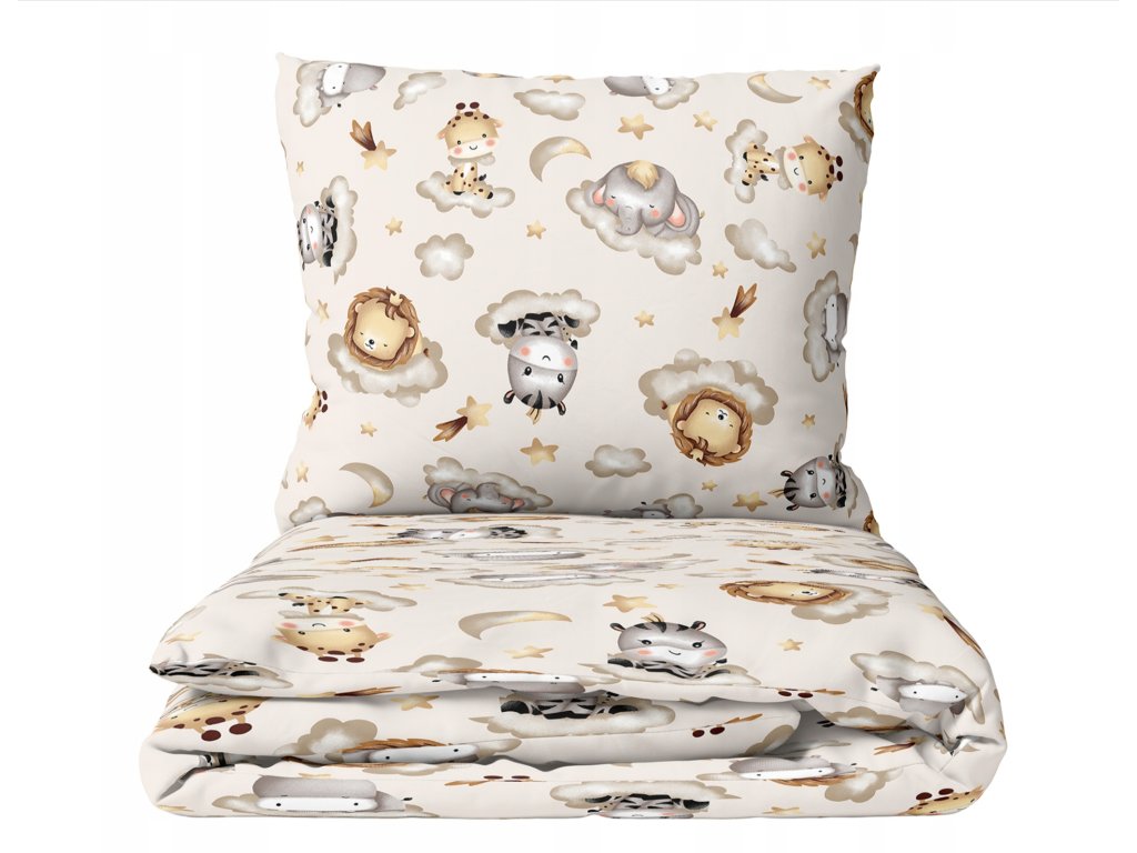 Памучно спално бельо за пухено одеяло с размери 120 x 90 cm и възглавница с размери 60 x 40 cm. Спалното бельо има цип.