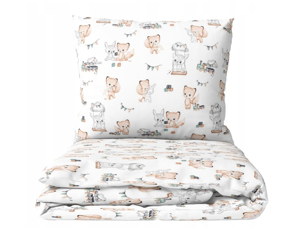 Памучно спално бельо за пухено одеяло с размери 120x90 cm и възглавница с размери 60x40 cm. Спалното бельо има цип.