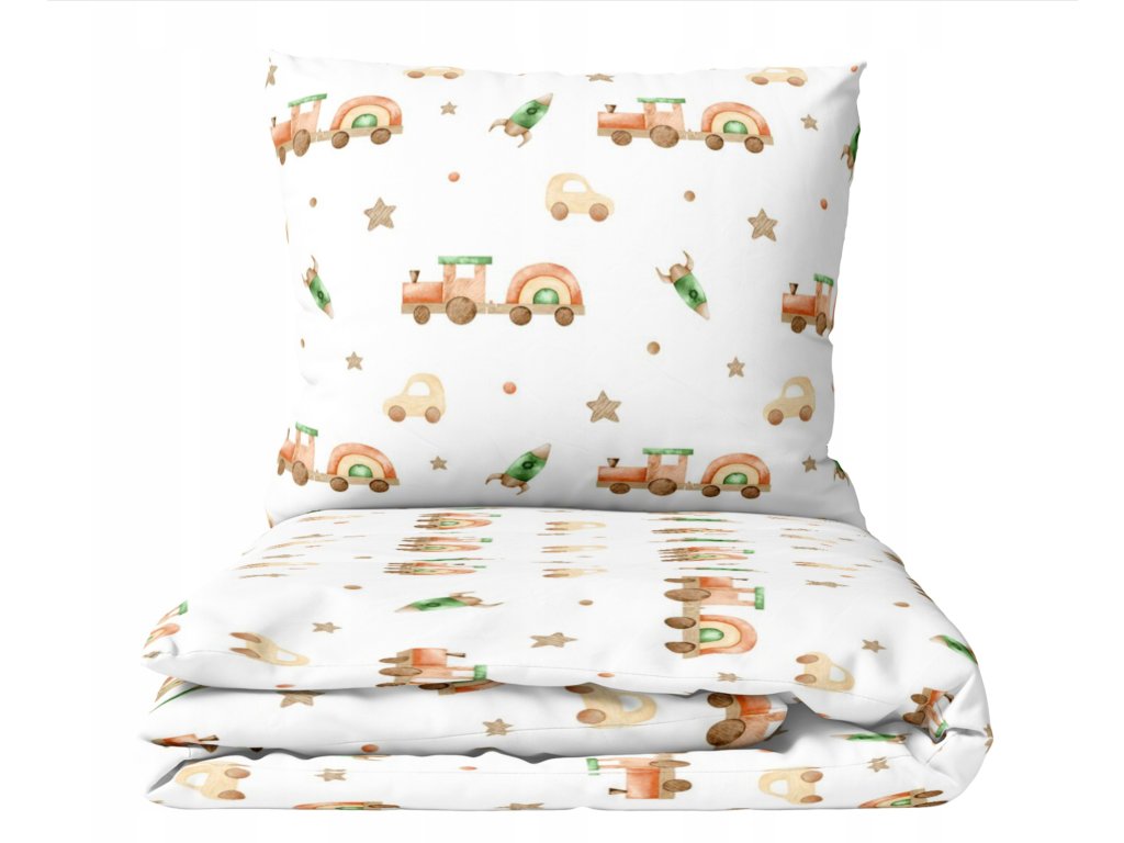 Памучно спално бельо за пухено одеяло с размери 120x90 cm и възглавница с размери 60x40 cm. Спалното бельо има цип.