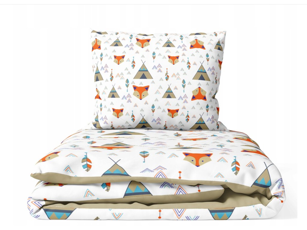 Памучно спално бельо за пухено одеяло с размери 120x90 cm и възглавница с размери 60x40 cm. Спалното бельо има цип.