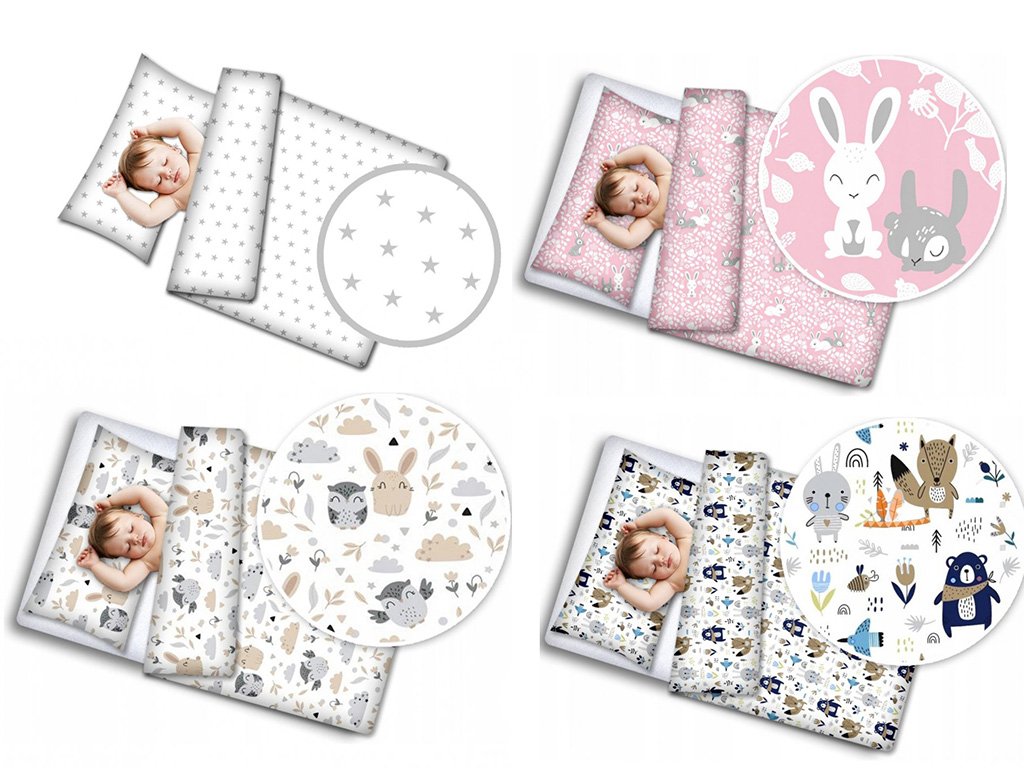 Памучно спално бельо за пухено одеяло с размери 120x90 cm и възглавница с размери 60x40 cm. Спалното бельо има цип.