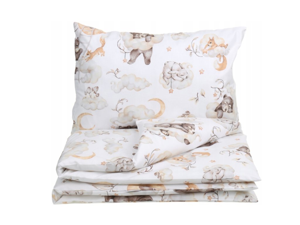 Памучно спално бельо за пухено одеяло с размери 135x100 cm и възглавница с размери 60x40 cm. Спалното бельо има цип.