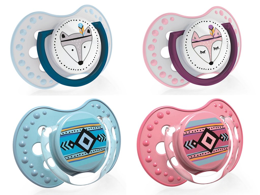 Предимството на динамичната залъгалка е нейната гъвкава силиконова част за смучене, която подпомага смукателния рефлекс. Залъгалките са изработени от PP и силикон без BPA и фталати.