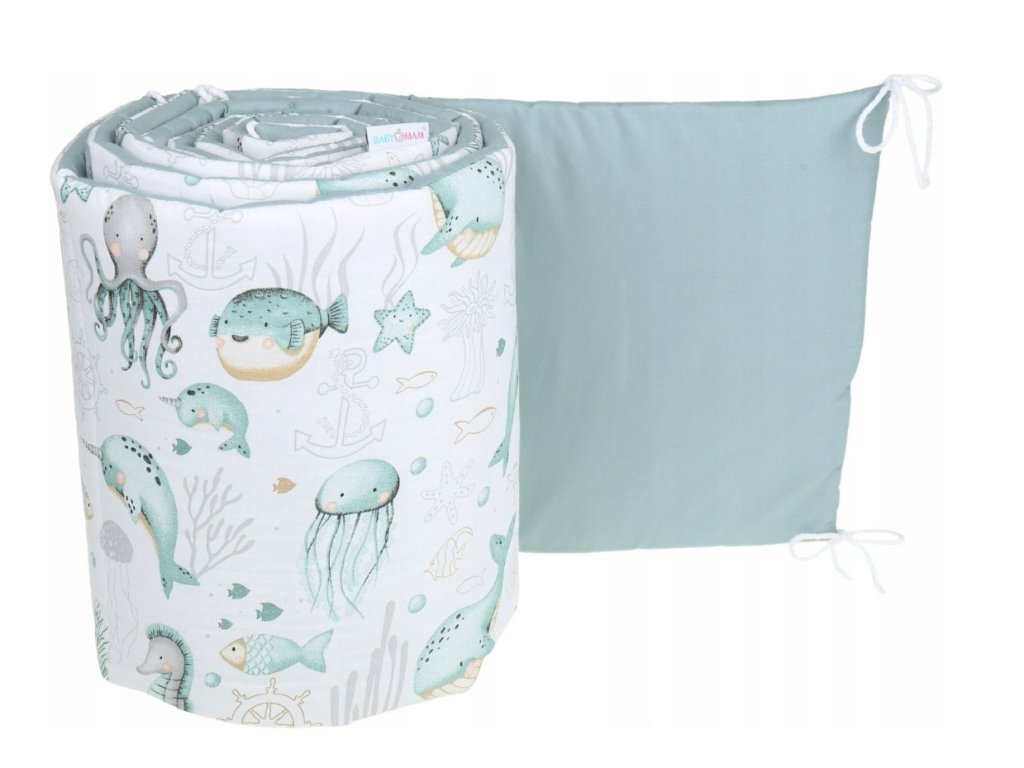 Оградата е пълна с пухкава силиконова пълнеж, която осигурява отлична защита срещу наранявания. Калъфът е изработен от 100% памук.