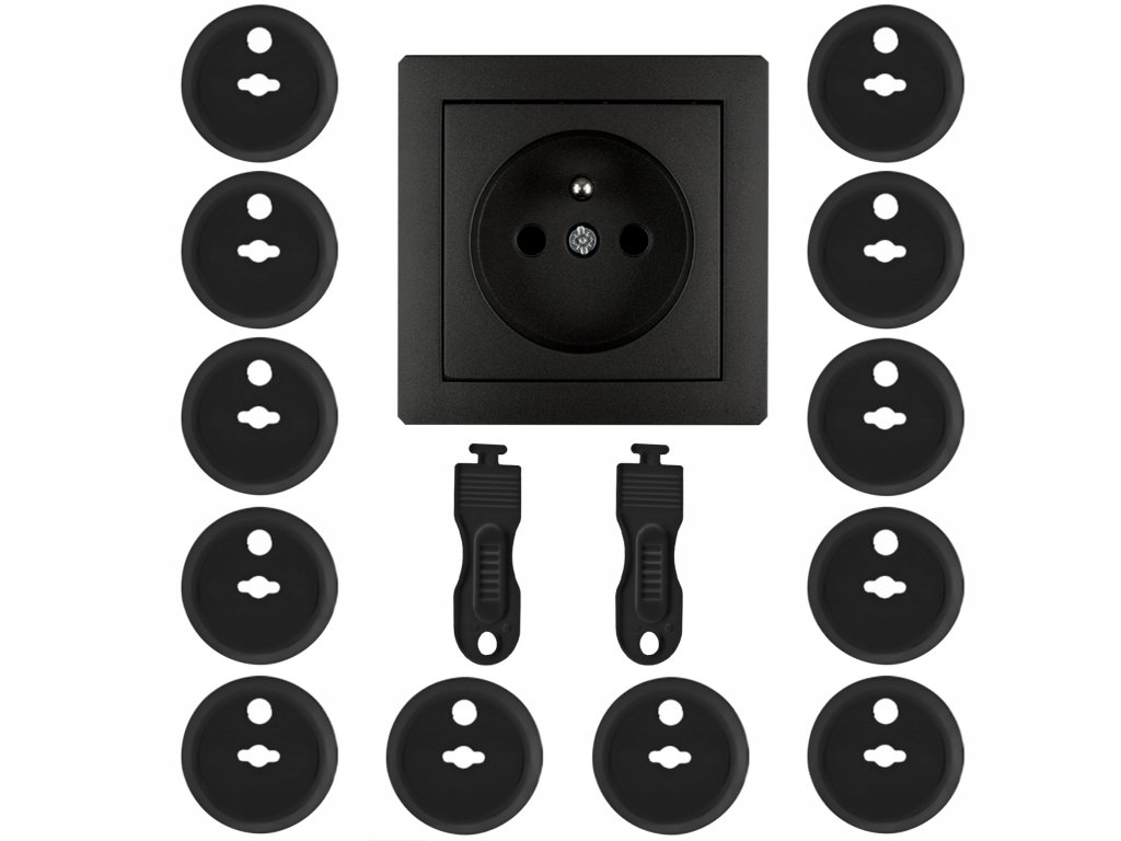 Капак за електрически контакт, черен, 12 бр. + 2 ключа