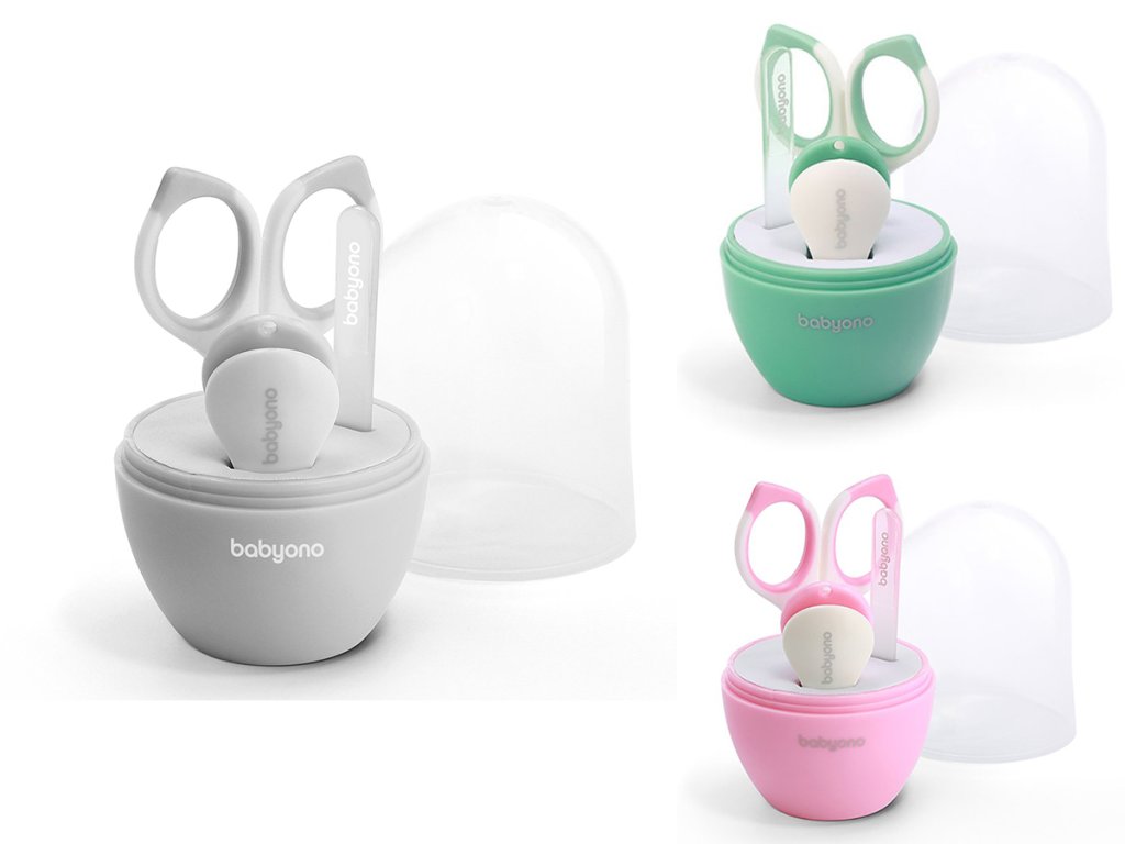Комплектът за грижа за ноктите на бебето включва ножици, пинсети и пила за нокти. Ножиците имат заоблени върхове, което ги прави безопасни за употреба и предотвратява нежелани убождания.
