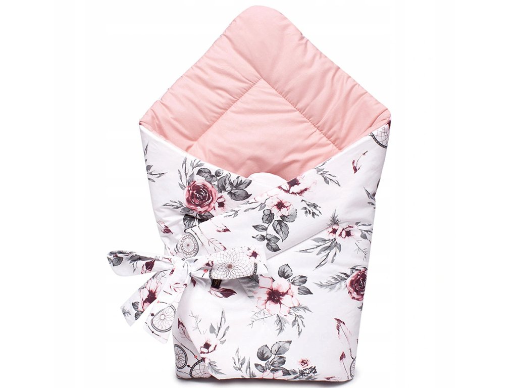 Модерно одеяло за повиване с панделка за закрепване. Одеялото за повиване е изработено от висококачествена памучна тъкан и хипоалергенна пълнеж.