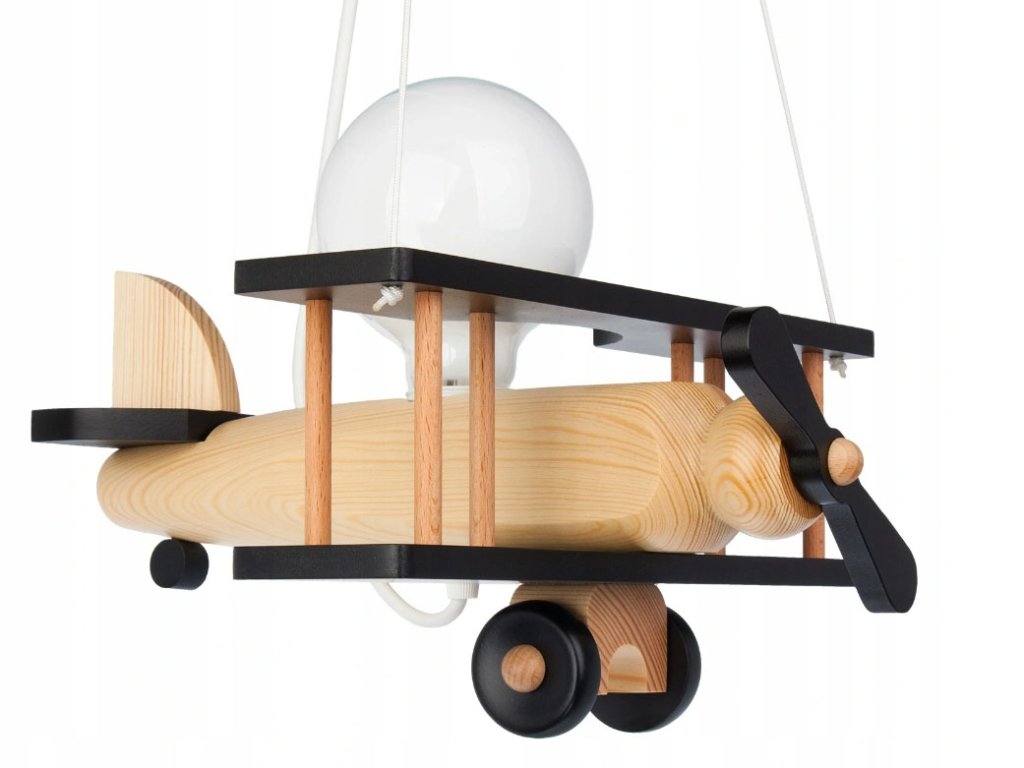 Luxi III Авио лампа за таван за детски стаи, дървена/черна