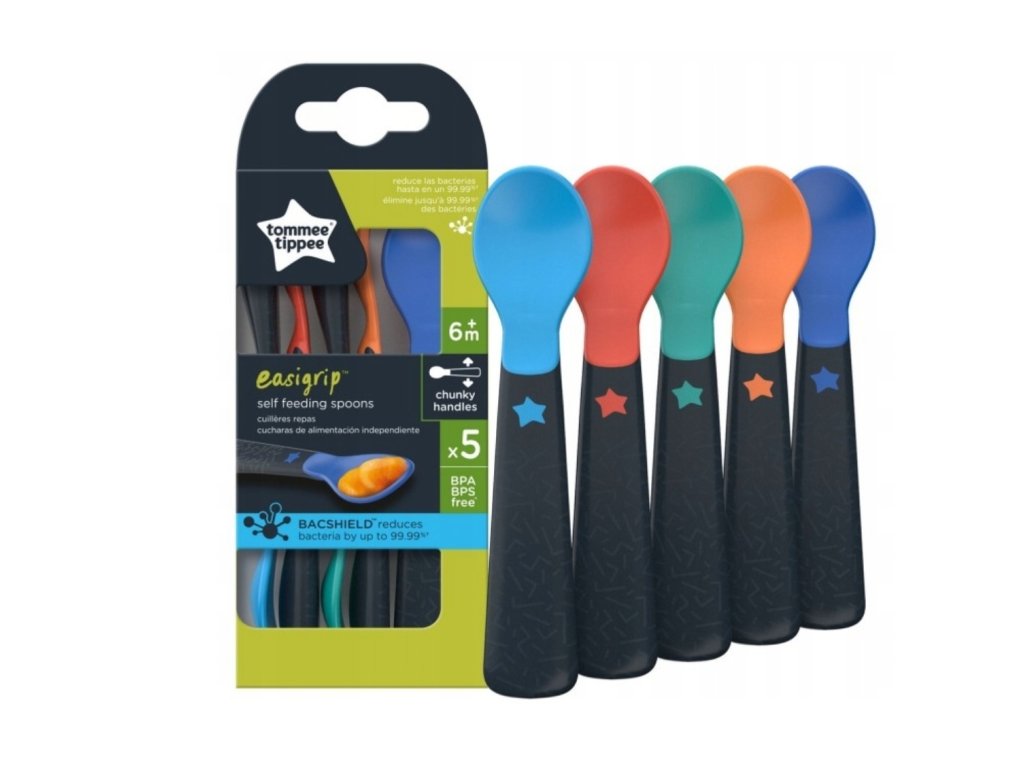 Комплект от пет лъжици за хранене в ярки цветове на изгодна цена. Лъжиците са подходящи за първото хранене с каша или бебешка храна. Те не са прекалено големи, така че се побират удобно в устата на бебетата. Подходящи са и за самостоятелно хранене, тъй като имат мек връх.
