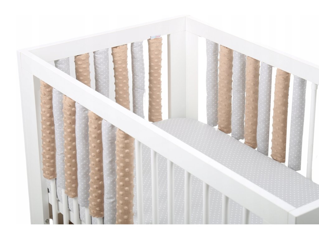 Защитната преграда за детско легло съдържа 20 защитни прегради от минки. Преградата е универсална и се адаптира към повечето детски легла.
