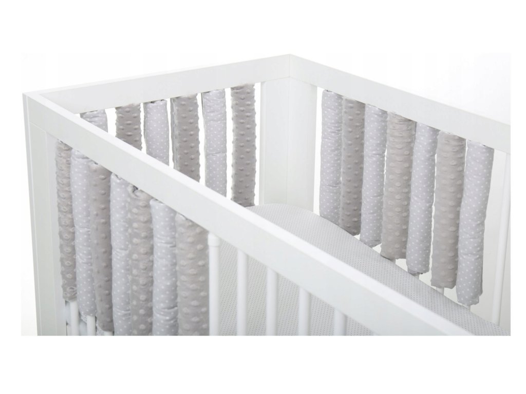 Предпазителят за релсите на детското легло съдържа 20 предпазителя от минки. Предпазителят е универсален и пасва на повечето детски легла.