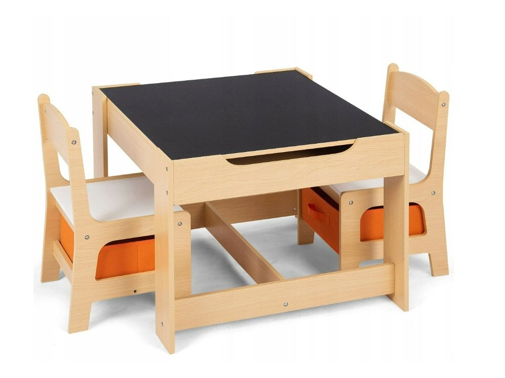 Интересна характеристика на този продукт е неговият гъвкав дизайн, тъй като плотът е двустранен, а цветът на мебелите е универсален и подходящ както за момичета, така и за момчета. На черната страна на плота може да се пише с тебешир и е изработена от материал, подобен на училищните черни дъски.