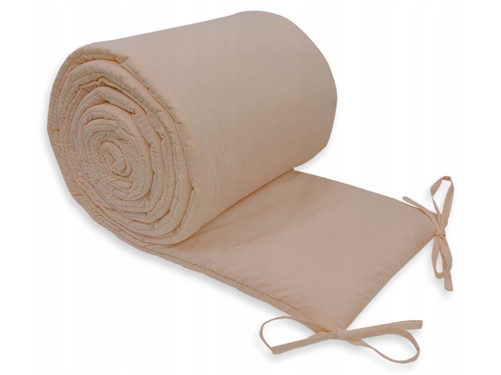 Едноцветният бежов предпазител с размери 180x30 е пълнен с мека, пухкава силиконова пълнеж, която предпазва от наранявания или риск от наранявания. Външният слой е изработен от висококачествен 100% памук.