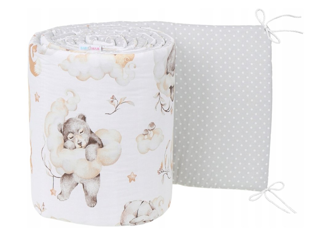 Бордът с мотив на горски животни, или предпазител за детско легло, е незаменим за вашето бебе. Той предпазва децата от заклещване на краката или ръцете между решетките на леглото или от удряне в рамката на леглото.