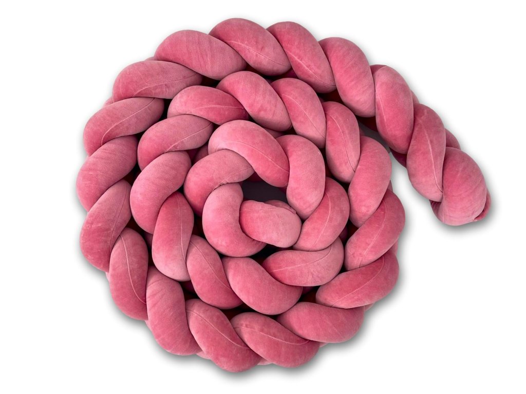 Дизайнерски ръчно изработен протектор/ограда за детски легла, изработен от висококачествени материали. Плетената ограда е много мека и може да се използва в детско легло, като гнездо или на диван.