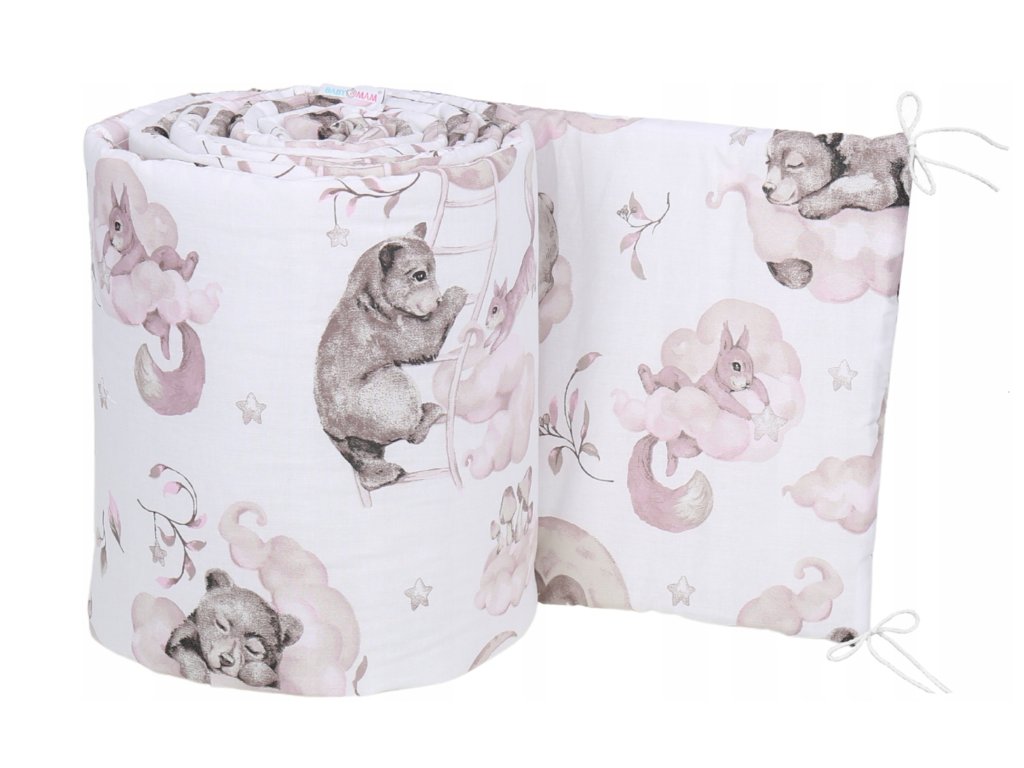 Бъмперът с мотив на горски животни, или предпазител за детско легло, е задължителен за вашето бебе. Той предпазва децата от заклещване на краката или ръцете между решетките на детското легло или от удряне в рамката на леглото.