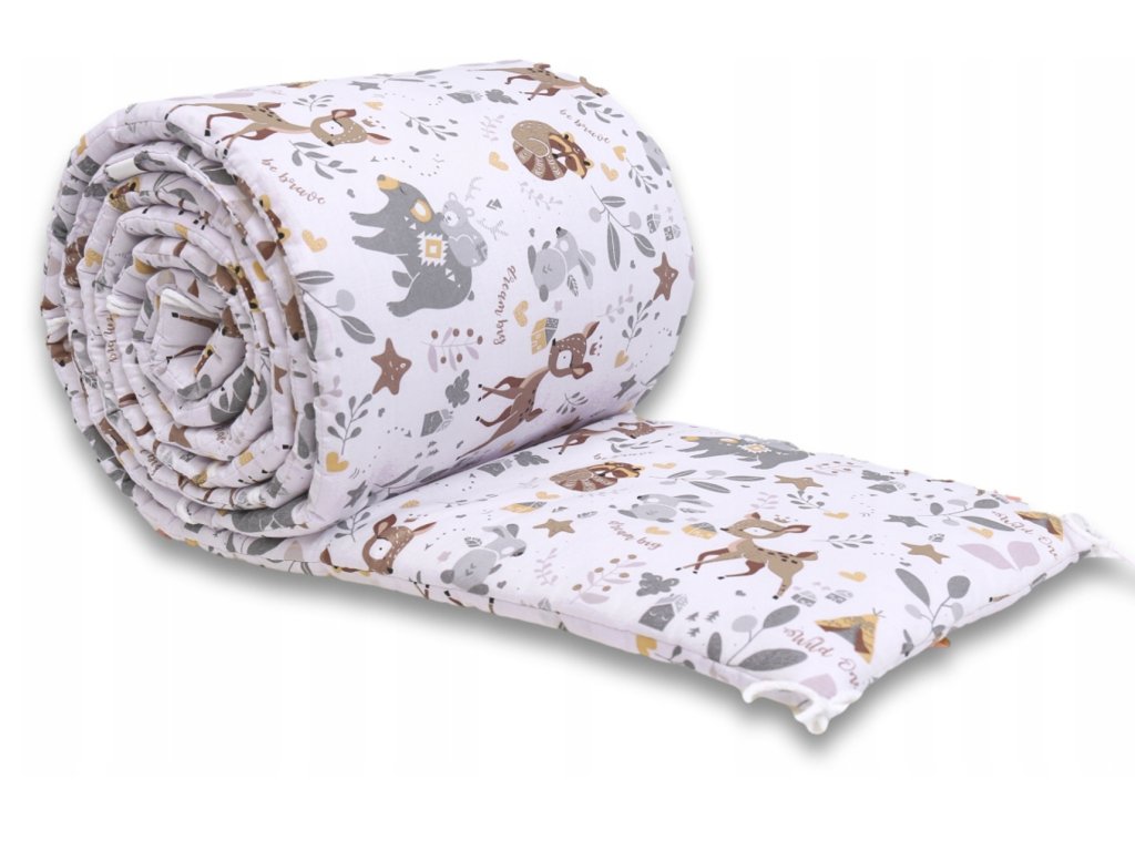 Бъмперът с мотив на горски животни, или предпазител за детско легло, е задължителен за вашето бебе. Той предпазва децата от заклещване на краката или ръцете между решетките на детското легло или от удряне в рамката на леглото.
