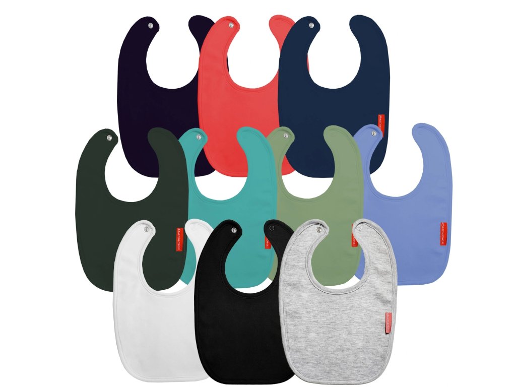 Изгоден комплект от 10 престилки, които предпазват бебето ви от замърсяване. Престилката има копче за закопчаване.