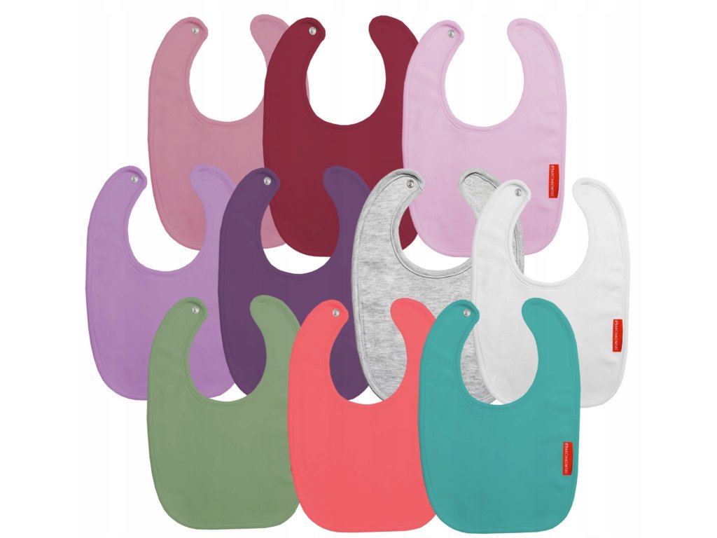 Изгоден комплект от 10 престилки, които предпазват бебето ви от замърсяване. Престилката има копче за закопчаване.