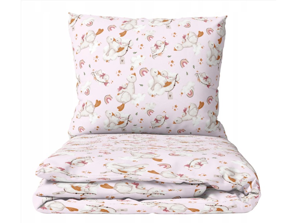 Памучно детско спално бельо 120x90 60x40 cm Розови патици