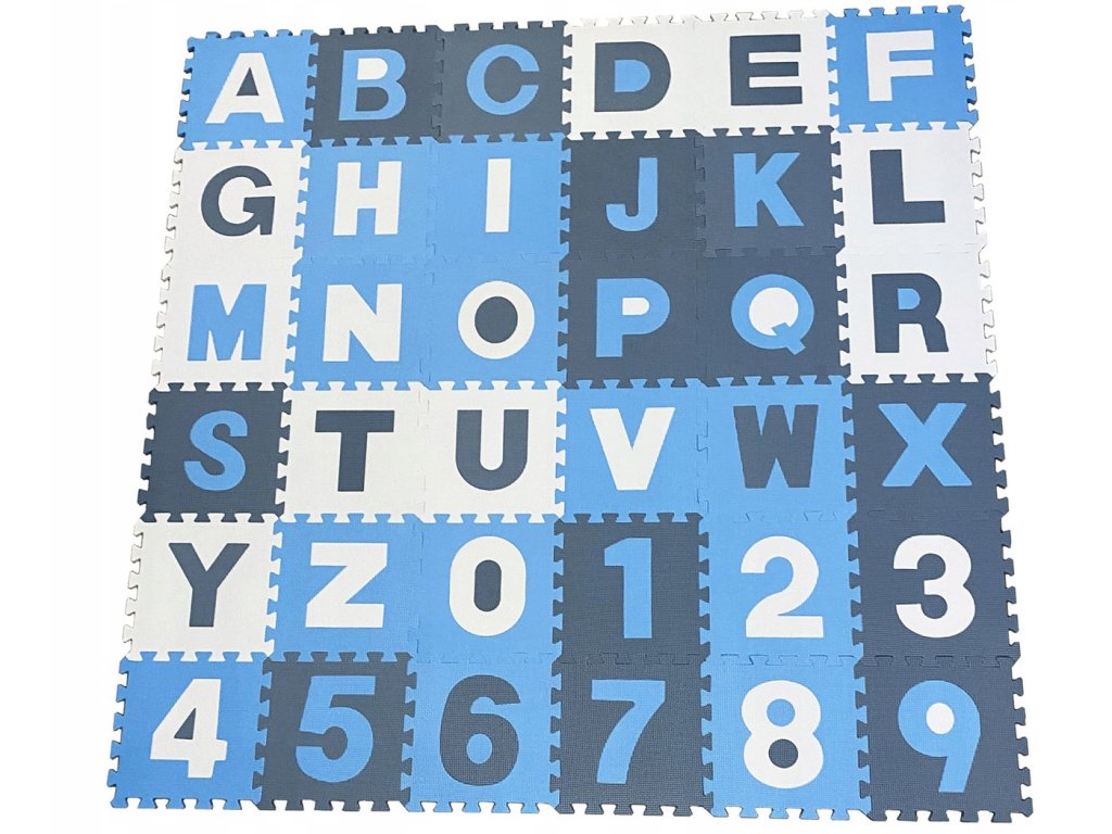 Буквите и цифрите стимулират развитието на възприятието и ученето на децата. Постелката е изработена от мек EVA материал. Материалът е лесен за почистване, водоустойчив и може да се сглобява в различни форми. Постелката има гладки ръбове, където се съединяват отделните парчета от пъзела.