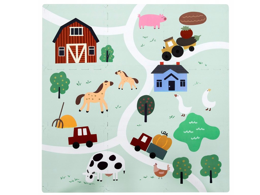 Пъзел-постелка за детски стаи с фермерска тематика. Постелката с форма на пъзел може да се сглоби според вашите предпочитания.