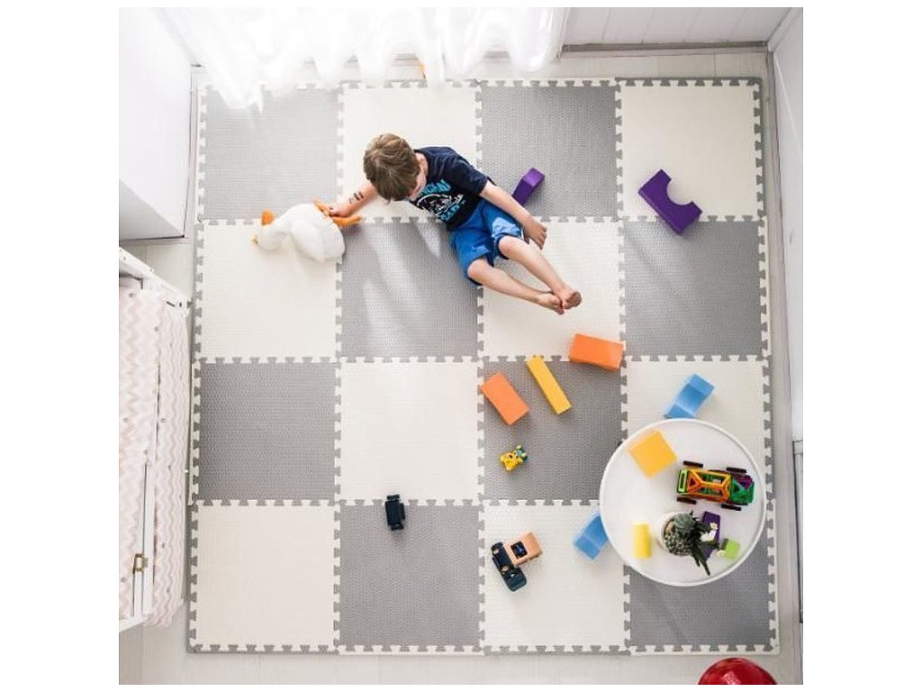 Игралната постелка с форма на пъзел може да се сглоби според вашите предпочитания. Постелката съдържа 9 пъзелни парчета + ръбове. Цялата постелка е в бежов цвят.