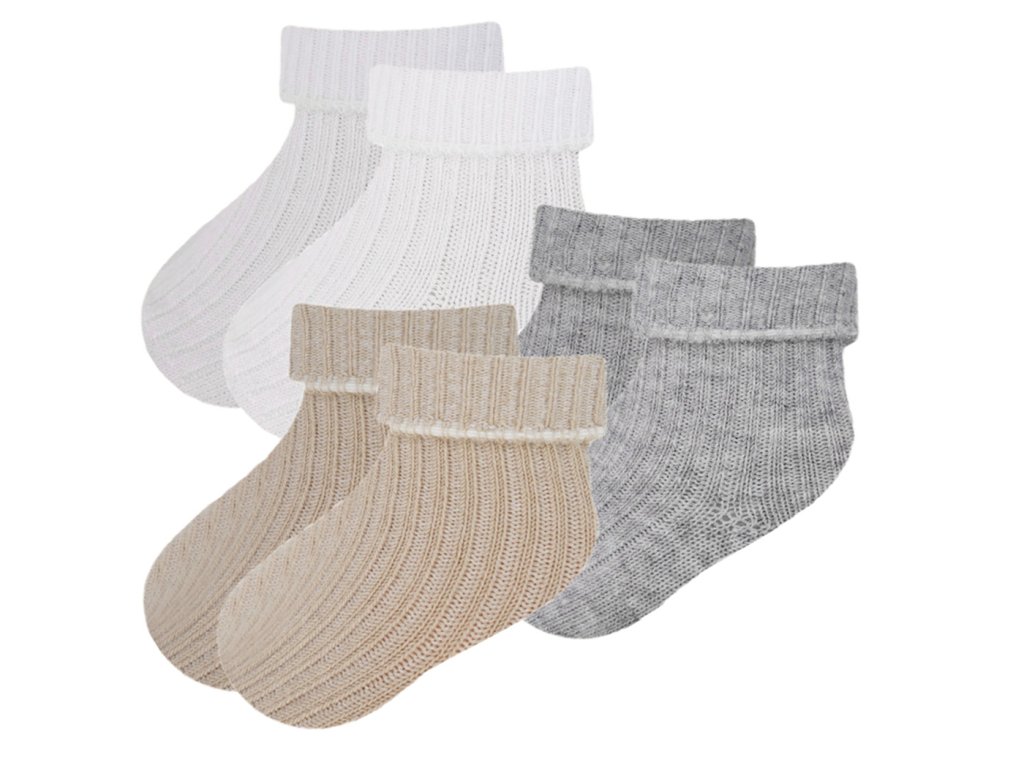 Удобни чорапи за новородени в практичен комплект от три чифта. Чорапите са в популярни неутрални цветове, подходящи както за момчета, така и за момичета.