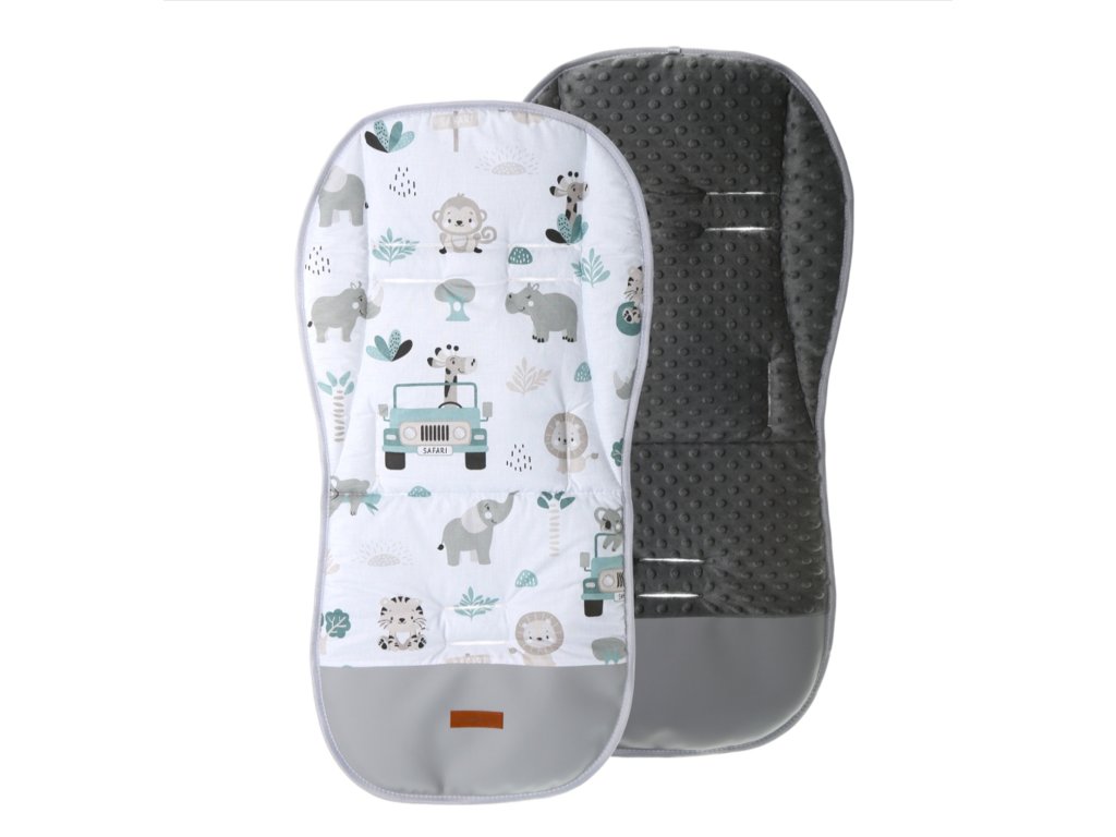 Тази стилна двустранна подложка за спортни колички е предназначена за преходни периоди. Едната страна на подложката е изработена от издръжлива памучна тъкан с шарка, а другата страна е от мека минк тъкан. Дъното е оборудвано с издръжлива, устойчива на износване част от двете страни.