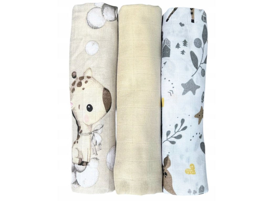 Цветни муселинови пелени с популярен дизайн и удобен комплект от 3 броя.