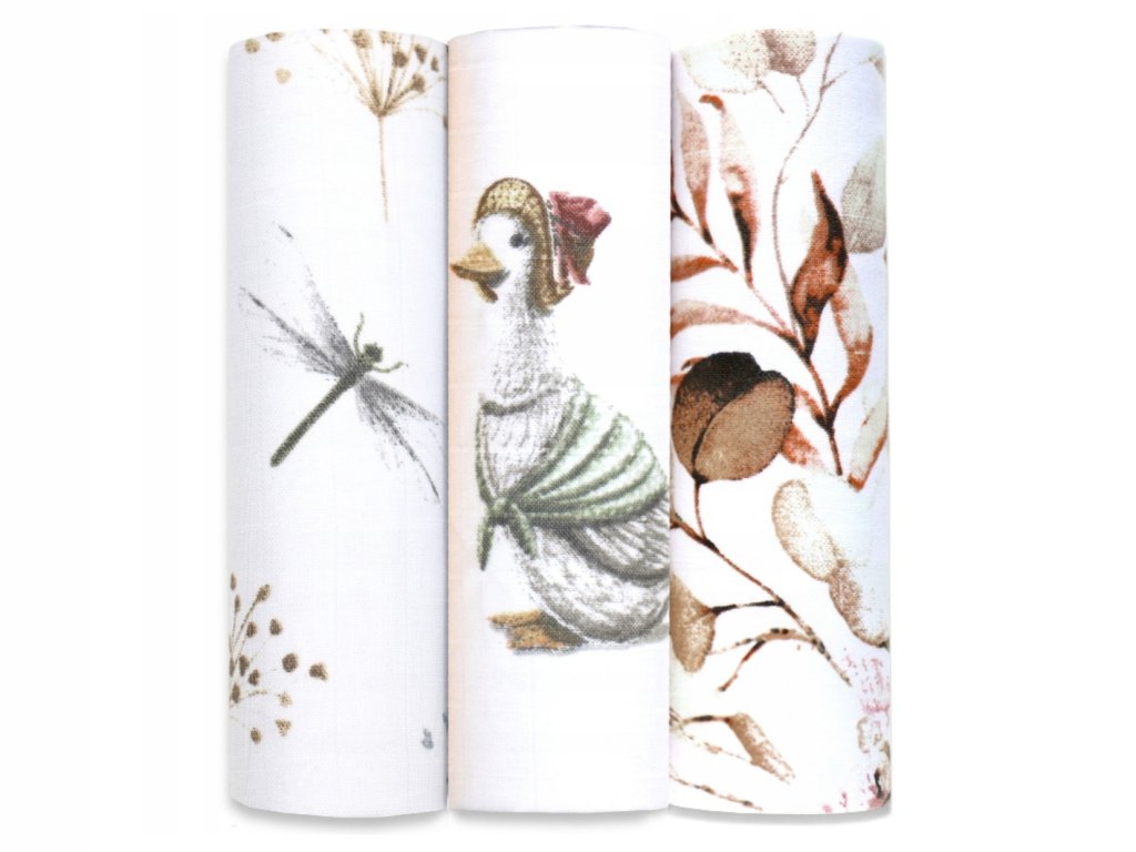 Цветни муселинови пелени с популярен дизайн и удобен комплект от 3 броя.
