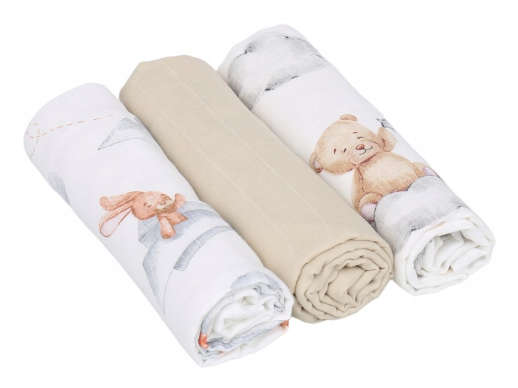 Премиум животни муселин пелени 60x75 3-в-1 мече на облак