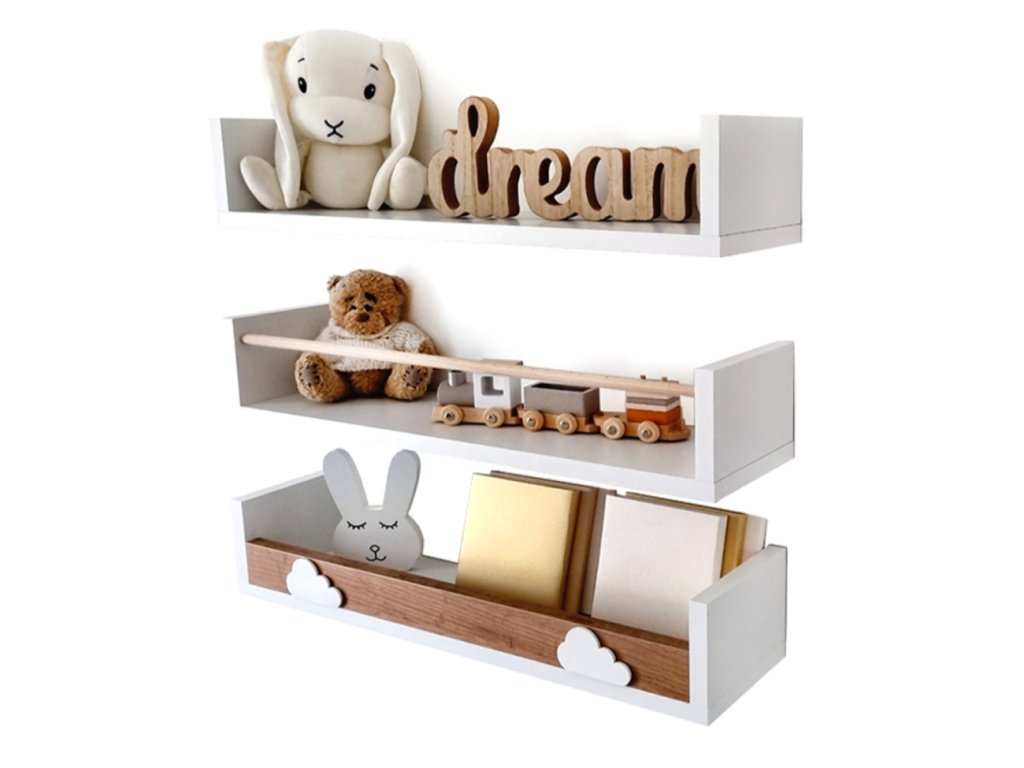 Имате ли ограничено място за съхранение? Играчките и разхвърляните вещи са навсякъде? Практичните рафтове за детски стаи (3 броя в опаковка) предлагат достатъчно място за всякакви играчки. Освен това, те имат преграда отпред, която предотвратява изпадането на играчките. Белият цвят и скандинавският стил гарантират, че те се вписват перфектно във всяка детска стая.