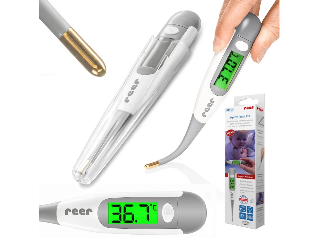 Специален цифров термометър за деца с гъвкав накрайник и позлатен накрайник. Той е проектиран специално за деца за високоточно измерване на температурата в устата, под мишницата или в ректума.