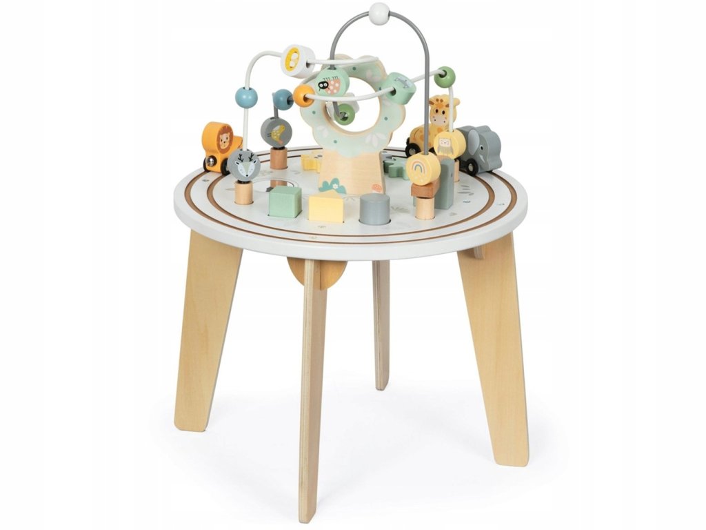 Сензорната дървена маса MAM Montessori е многофункционално образователно средство, което подпомага естественото развитие на сетивните и двигателните умения на децата. Тази маса предлага до седем различни дейности в едно, предоставяйки на децата богати възможности за открития и учене. Тя е изработена от висококачествено дърво с екологично чиста повърхност, която е безопасна за децата. Масата включва различни интерактивни елементи, които стимулират допира, зрението и слуха, включително цветни мъниста и сензорни материали.