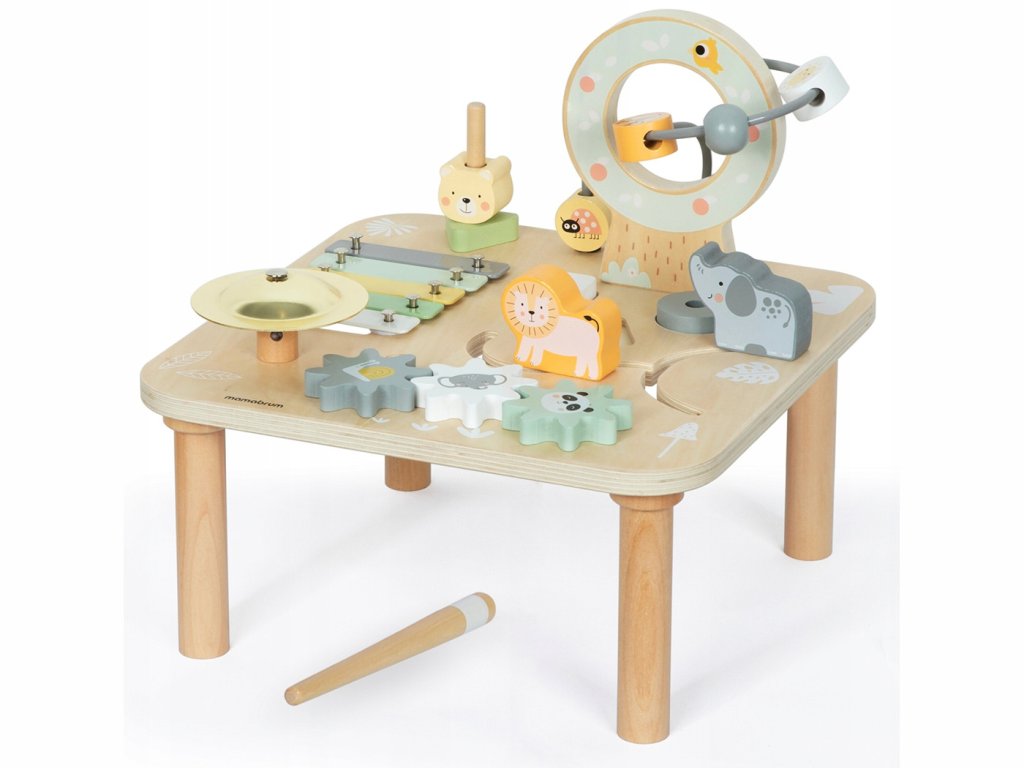 Масата е проектирана според принципите на педагогиката Монтесори, която набляга на самостоятелното откриване и учене. Тя е идеална за деца на възраст от 9 месеца и им позволява да развиват творчество, фини моторни умения, координация и сензорно възприятие. Сензорната дървена маса е чудесно средство за родители, които искат да мотивират децата си да учат активно и играещо в безопасна среда.