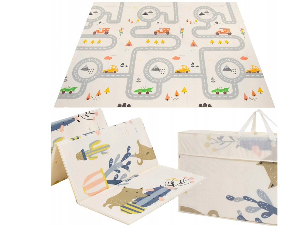 Изключително практична и компактна игрална постелка. Тя е сгъваема, така че можете лесно да я вземете със себе си навсякъде. Постелката е двустранна и изработена от лесен за поддръжка материал.
