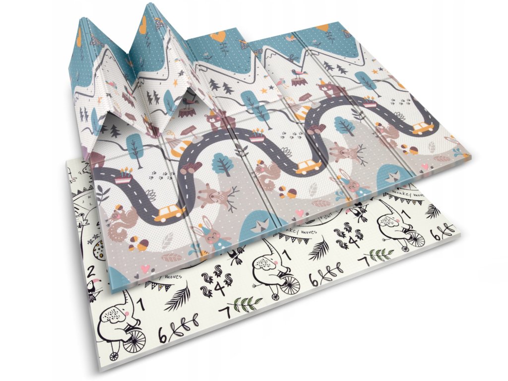 Изключително практичен и компактен игрален килим. Той е сгъваем, така че можете лесно да го вземете със себе си навсякъде. Килимът е двустранен и изработен от лесен за поддръжка материал.