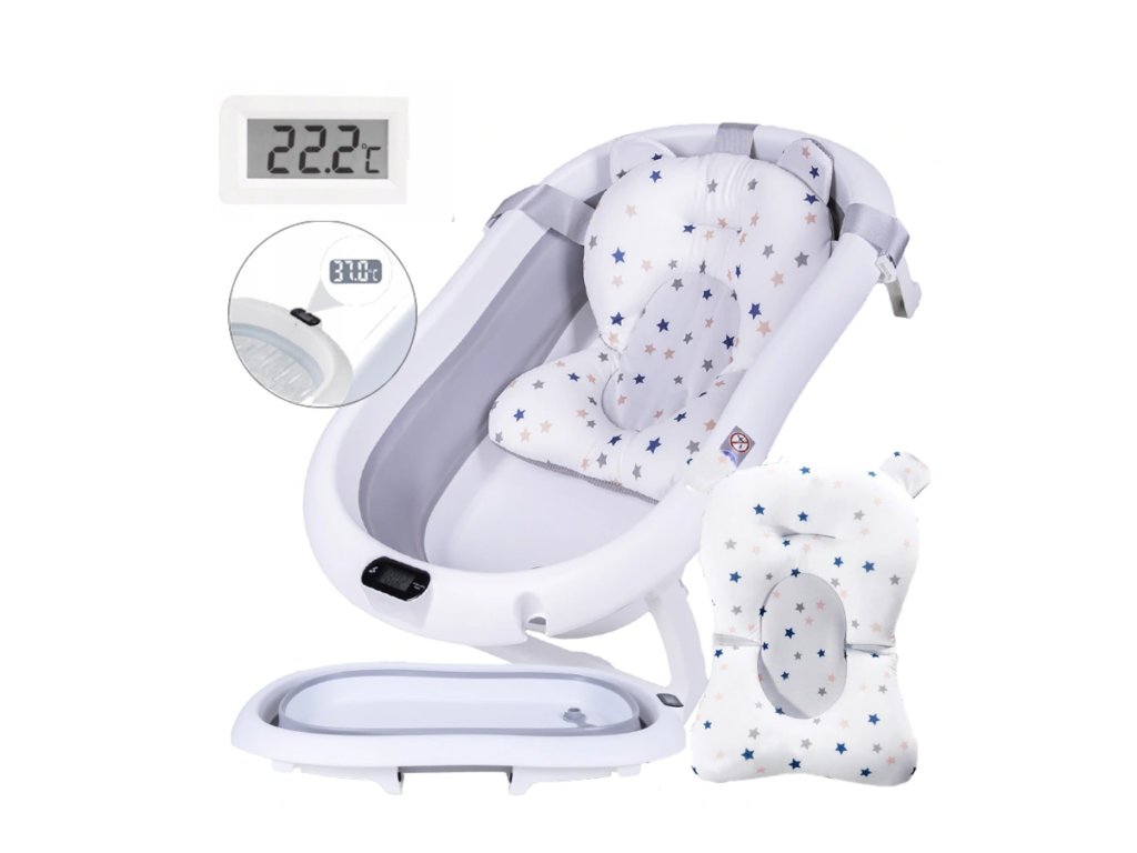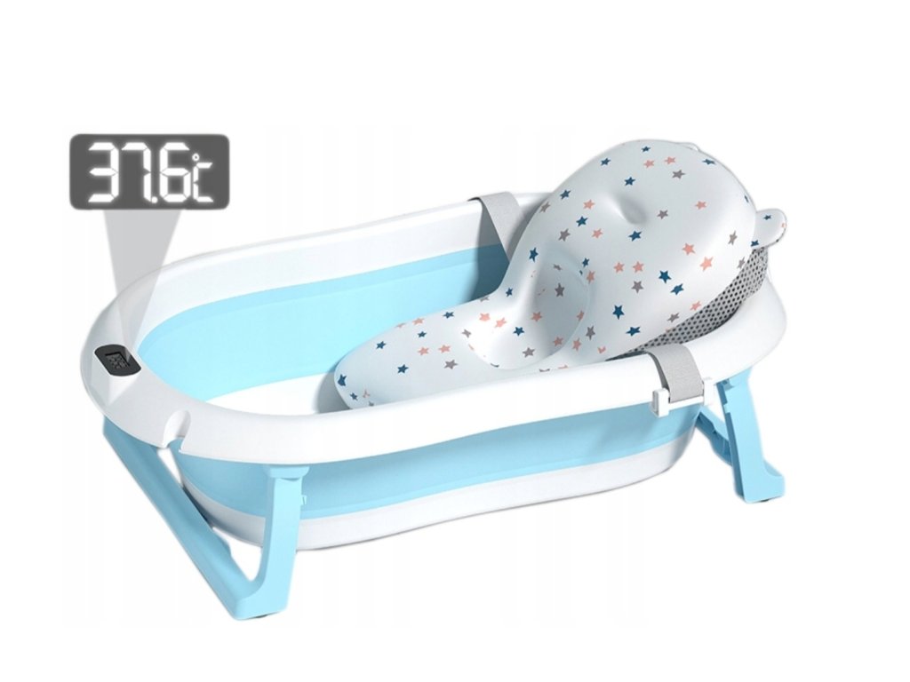 Ванката е много лека (само 2,6 кг) и лесна за съхранение. Когато е сгъната, височината й е само около 10 см. Ванката е оборудвана с практичен термометър със сензор.