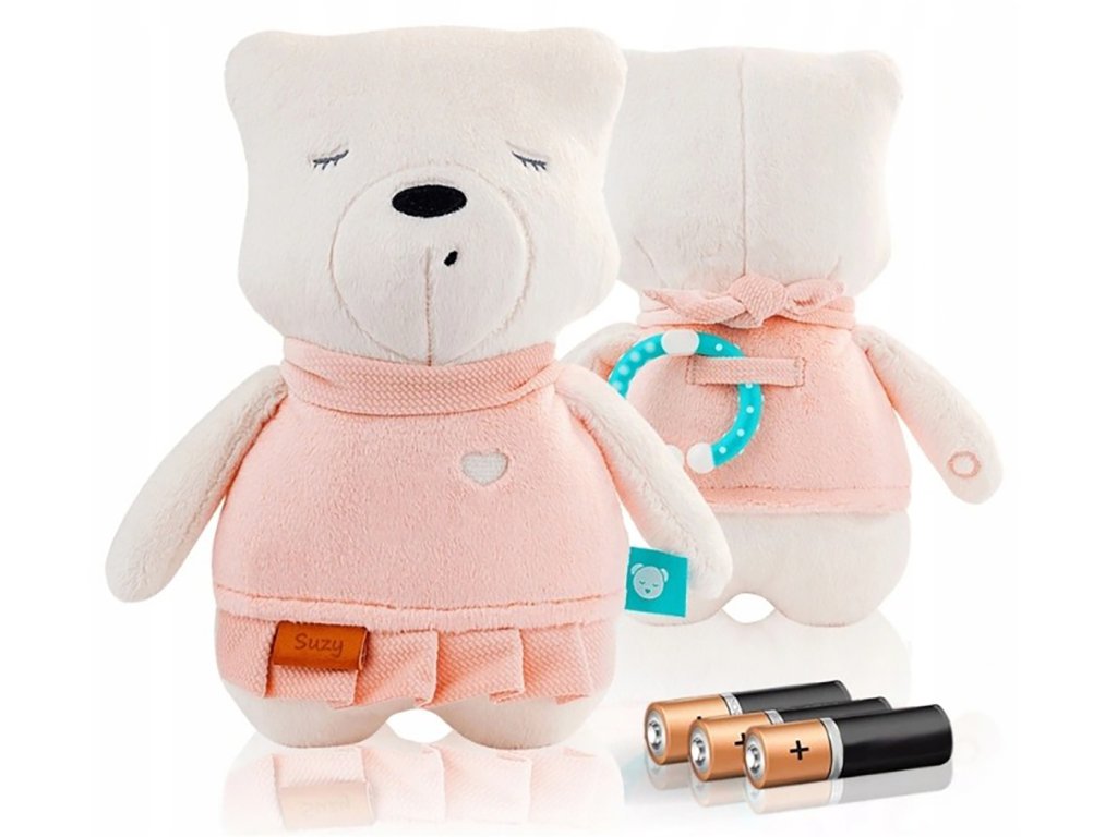 Пухкавото мече Сузи е идеално от първите мигове на живота, като успокоява бебето ви с нежно бръмчене, подобно на сърцебиенето на майката в утробата. Това успокоява бебето ви и подобрява качеството на съня му.