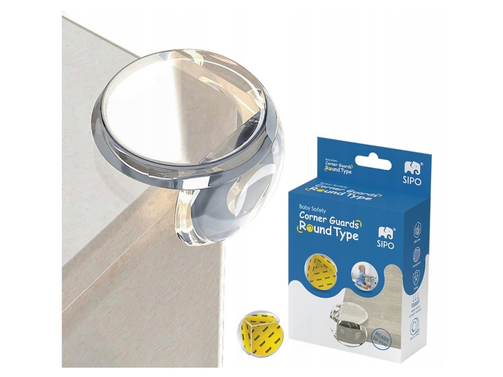 Меки силиконови защитни ъгли за ръбовете на маси или мебели. Комплектът съдържа 4 броя защитни ъгли. Защитните ъгли са универсални и подходящи за всякакви мебели. Те се закрепват към масата с помощта на приложената двустранна лепенка.