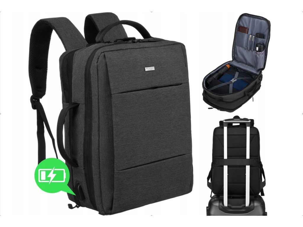 Раницата има просторен джоб с цип и преден джоб за документи или паспорт. Освен това е оборудван с дишащи ремъци и заден панел, порт за зареждане и може да се разширява до 10 cm. Можете лесно да минете през чекирането с багаж с необходимите размери, а след това да разширите раницата и да добавите допълнителна храна или напитки, закупени на летището.